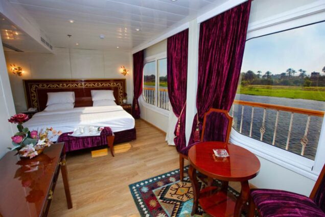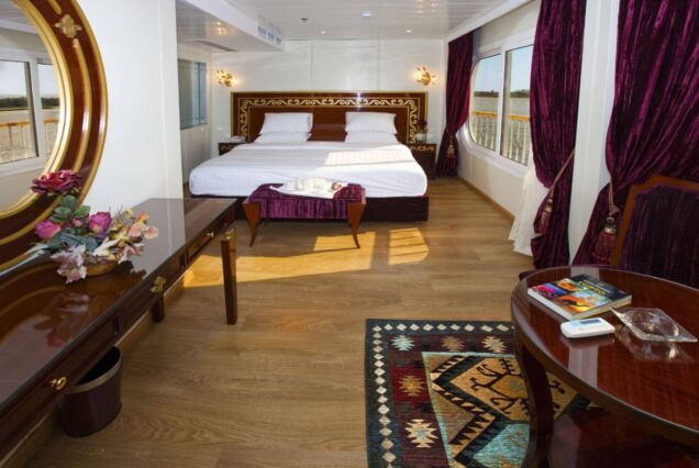 Setting it apart from all others on the Nile, the M/S Al Hambra features the largest standard suites available, each spanning an impressive 31 square meters, complemented by an additional 6 square meters of elegantly designed bathroom space. This exceptional layout provides a rare sense of openness and privacy, ensuring an indulgent and supremely comfortable stay for every guest.